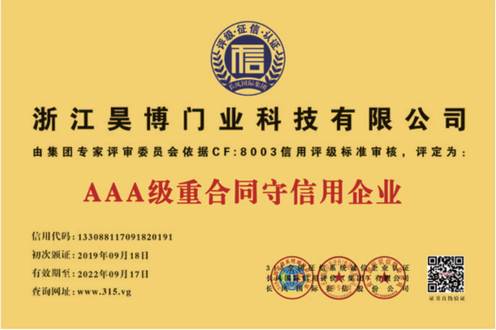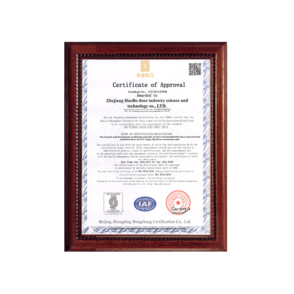 公司一直以來嚴格執(zhí)行ISO9001質量體系和ISO14001環(huán)境管理體系標準,建立了完備的科研、開發(fā)、生產、銷售服務體系。公司是浙江省門業(yè)協會會員單位,江山門業(yè)協會理事單位,中國木材與木制品流通協會會員單位,江山市消防協會副會長單位。